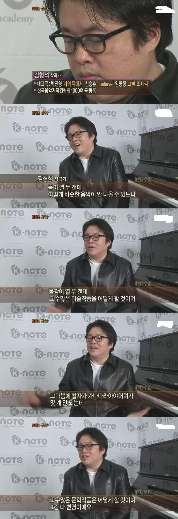 첫번째는 그들의 직업관이 그 정도인 것이므로 뻔뻔하다고 비판할 수 있겠지만 두번째에 다다라서는 대중의 말문이 막힌다. 그러나 화성학에 무지한 사람이라도 남의 것을 베낄 때 문장 하나, 부호와 토씨 하나 틀리지 않고 가져오면 들킨다는 걸 안다. 만약 어떤 작곡가가 어떤 곡이 마음에 들어 그 곡을 들키지 않고 가져오기로 했다면, 표절이라는 끔찍한 낙인을 피해 여러가지 변형을 가할 것은 너무나도 당연한 사실이다. 대놓고 번안을 하지 않는 이상 지극히 상식적인 논리다. 전문가인 척하지만 표절을 옹호하는 변명일 뿐이다.